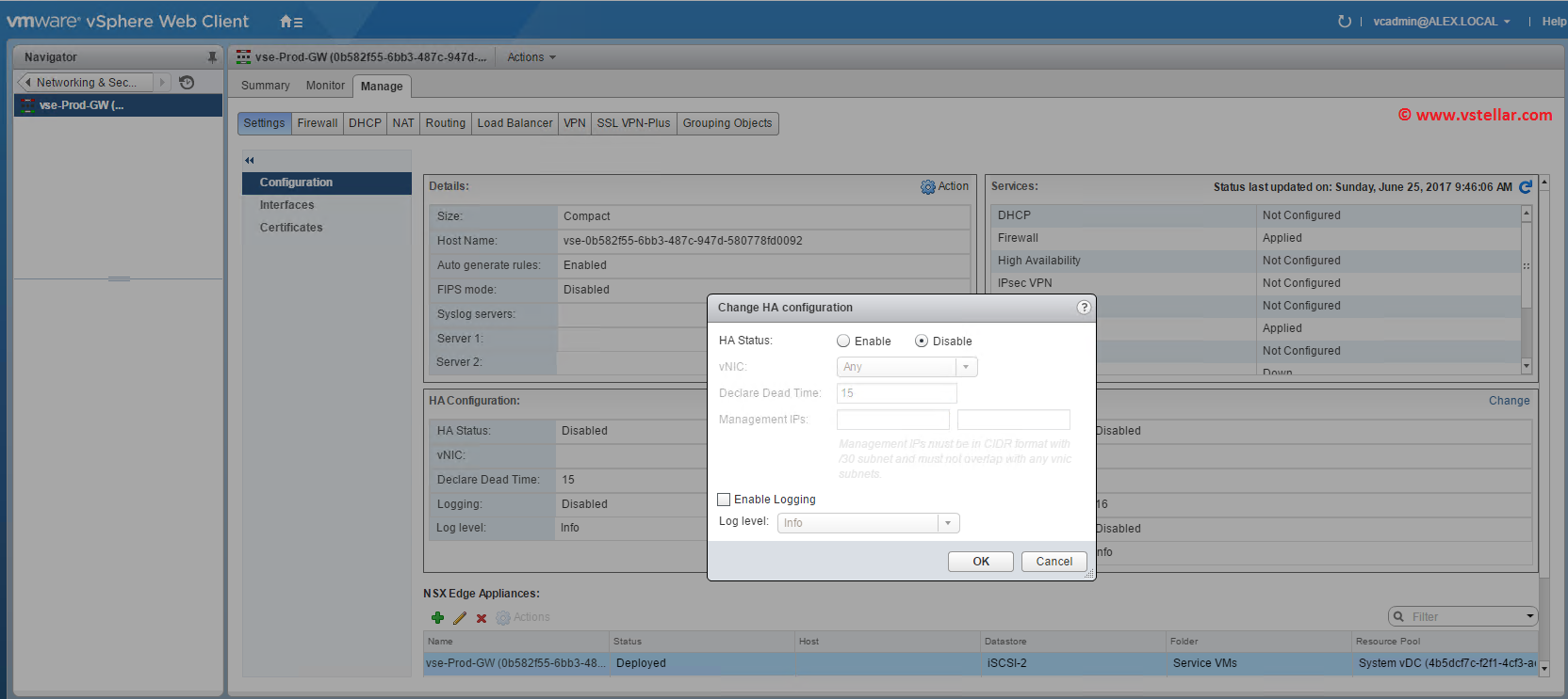 You will see a couple of edge backing vm’s in vCenter post enabling HA