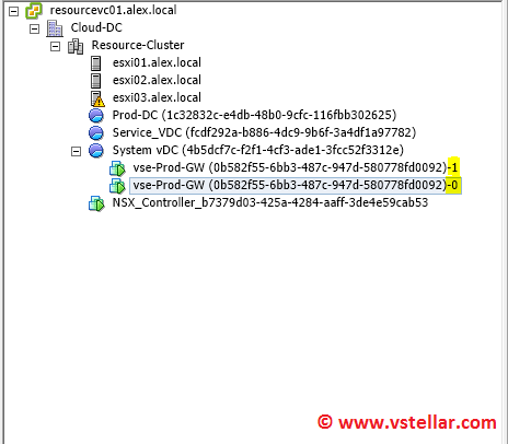 <?xml version="1.0" encoding="UTF-8"?> <appliances> <applianceSize>compact</applianceSize> <appliance> <highAvailabilityIndex>0</highAvailabilityIndex> <vcUuid>5010d31c-bd18-ebaa-f639-23052acede04</vcUuid> <vmId>vm-124</vmId> <haAdminState>up</haAdminState> <resourcePoolId>resgroup-72</resourcePoolId> <resourcePoolName>System vDC (4b5dcf7c-f2f1-4cf3-ade1-3fcc52f3312e)</resourcePoolName> <datastoreId>datastore-62</datastoreId> <datastoreName>iSCSI-2</datastoreName> <hostId>host-32</hostId> <hostName>esxi02.alex.local</hostName> <vmFolderId>group-v81</vmFolderId> <vmFolderName>Service VMs</vmFolderName> <vmHostname>vse-0b582f55-6bb3-487c-947d-580778fd0092-0</vmHostname> <vmName>vse-Prod-GW (0b582f55-6bb3-487c-947d-580778fd0092)-0</vmName> <deployed>true</deployed> <cpuReservation> <limit>-1</limit> <reservation>64</reservation> </cpuReservation> <memoryReservation> <limit>512</limit> <reservation>256</reservation> </memoryReservation> <edgeId>edge-2</edgeId> <configuredResourcePool> <id>resgroup-72</id> <name>System vDC (4b5dcf7c-f2f1-4cf3-ade1-3fcc52f3312e)</name> <isValid>true</isValid> </configuredResourcePool> <configuredDataStore> <id>datastore-62</id> <name>iSCSI-2</name> <isValid>true</isValid> </configuredDataStore> <configuredVmFolder> <id>group-v81</id> <name>Service VMs</name> <isValid>true</isValid> </configuredVmFolder> </appliance> <appliance> <highAvailabilityIndex>1</highAvailabilityIndex> <vcUuid>5010a7c1-daa2-56b1-adc3-4d2100f59e7e</vcUuid> <vmId>vm-125</vmId> <haAdminState>up</haAdminState> <resourcePoolId>resgroup-72</resourcePoolId> <resourcePoolName>System vDC (4b5dcf7c-f2f1-4cf3-ade1-3fcc52f3312e)</resourcePoolName> <datastoreId>datastore-62</datastoreId> <datastoreName>iSCSI-2</datastoreName> <hostId>host-29</hostId> <hostName>esxi01.alex.local</hostName> <vmFolderId>group-v81</vmFolderId> <vmFolderName>Service VMs</vmFolderName> <vmHostname>vse-0b582f55-6bb3-487c-947d-580778fd0092-1</vmHostname> <vmName>vse-Prod-GW (0b582f55-6bb3-487c-947d-580778fd0092)-1</vmName> <deployed>true</deployed> <cpuReservation> <limit>-1</limit> <reservation>64</reservation> </cpuReservation> <memoryReservation> <limit>512</limit> <reservation>256</reservation> </memoryReservation> <edgeId>edge-2</edgeId> <configuredResourcePool> <id>resgroup-72</id> <name>System vDC (4b5dcf7c-f2f1-4cf3-ade1-3fcc52f3312e)</name> <isValid>true</isValid> </configuredResourcePool> <configuredDataStore> <id>datastore-62</id> <name>iSCSI-2</name> <isValid>true</isValid> </configuredDataStore> <configuredVmFolder> <id>group-v81</id> <name>Service VMs</name> <isValid>true</isValid> </configuredVmFolder> </appliance> <deployAppliances>true</deployAppliances> </appliances> |