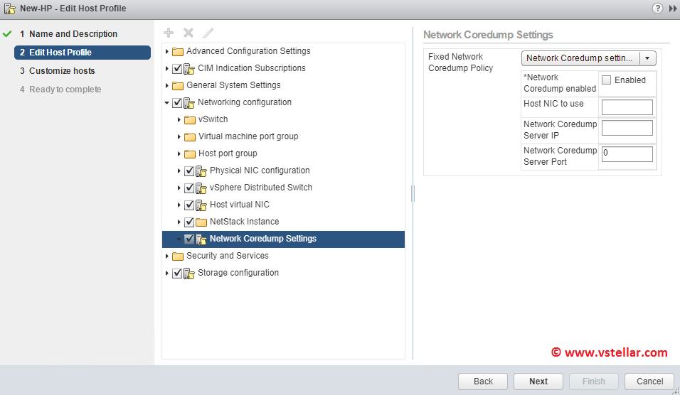 Edit your host profile and expand Networking Configurations section and select Network Coredump Settings. At this point you will see that this service has not been enabled/configured.