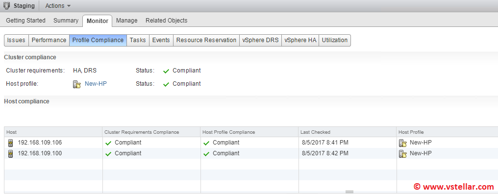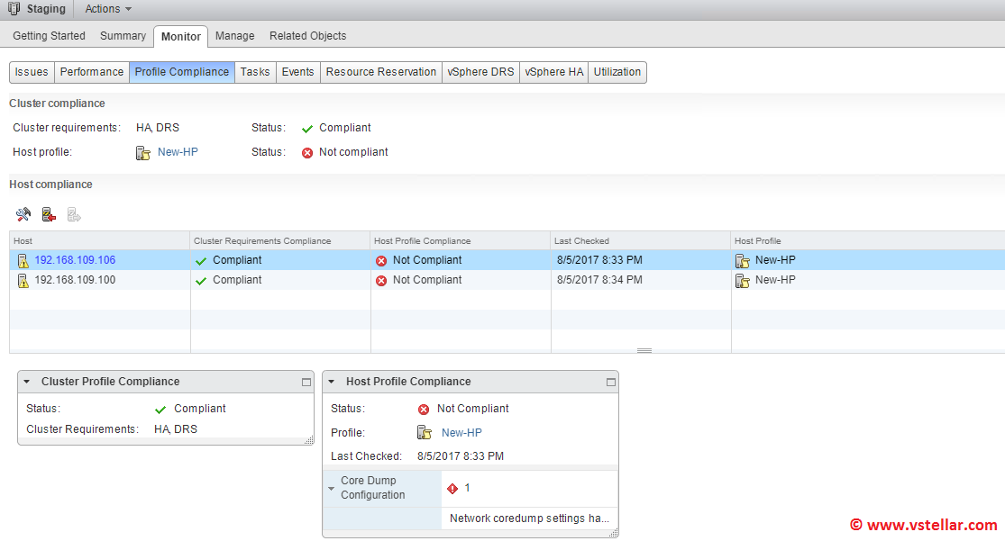 At this point it is expected for cluster/hosts to be non-compliant with host profile.