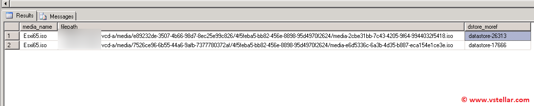 select media_name,filepath,dstore_moref from managed_media where media_name = 'Esxi65.iso'; |