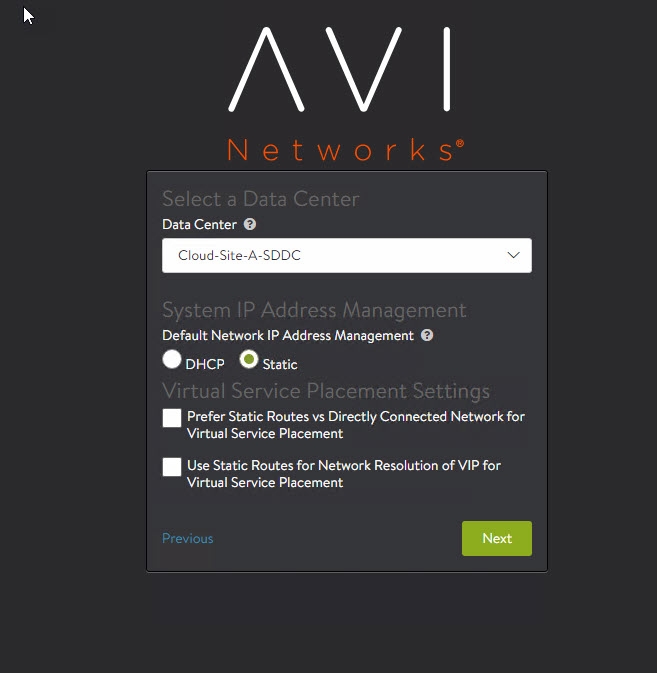 Select the type of orchestrator with which you want to integrate Avi controller. In my case it’s VMware.