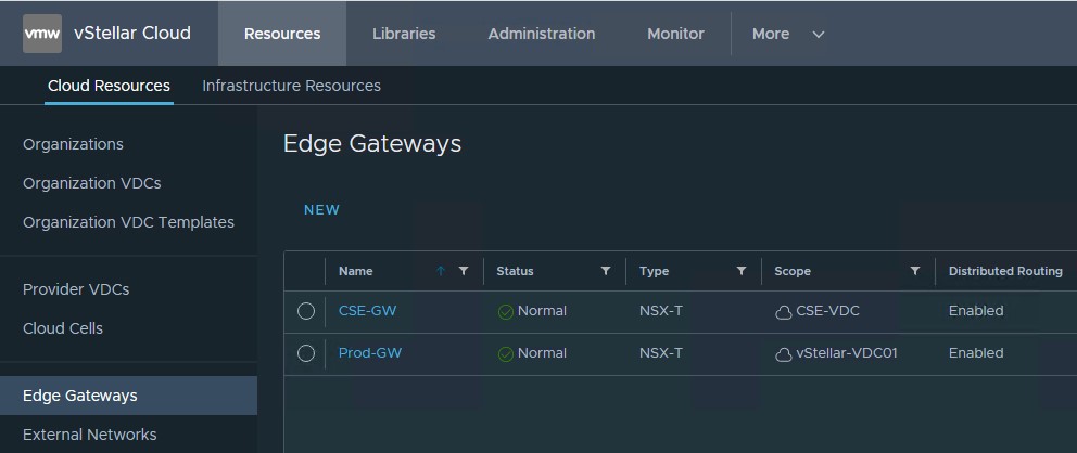 To enable load balancing for a tenant, navigate to Resources > Cloud Resources > Edge Gateways and locate the Edge Gateway of the tenant.