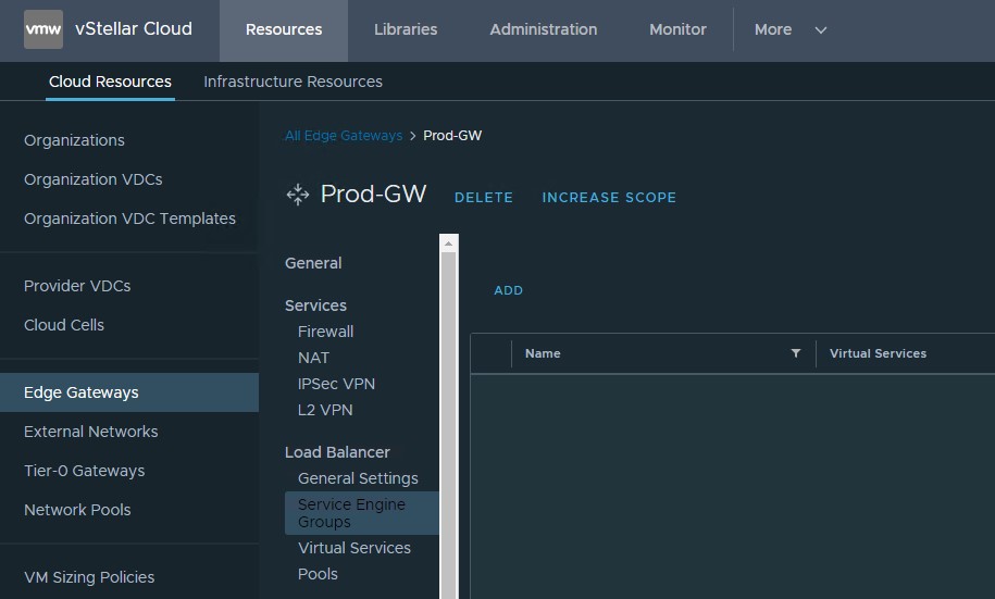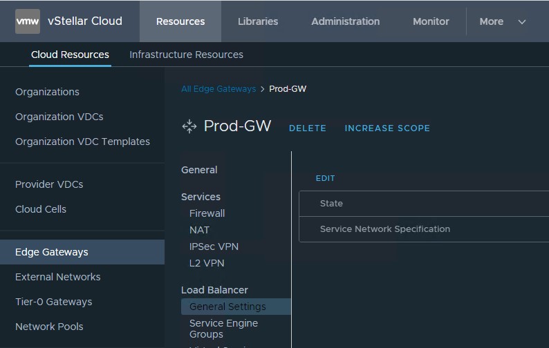 Tenants won’t be able to consume the SEGs imported in VCD until Service Provider enables load balancing on the tenant’s org.