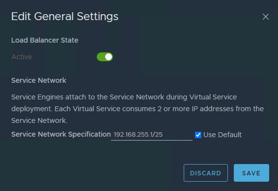 Activate Load Balancing using the toggle button. You can use the default Service Network Specification.