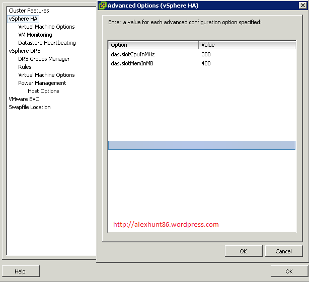 By default HA will take the largest CPU and memory reservation of virtual machines in a cluster to determine Slot size for the cluster/hosts. But we can force HA to use user defined value of CPU and memory to calculate slot size. There are two advanced settings that you can configure in order to create a custom slot size; one for CPU and one for memory