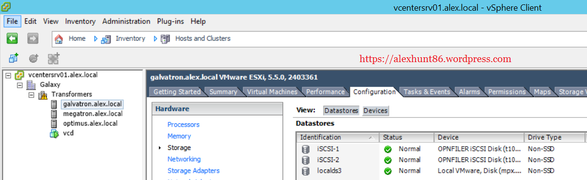 - All Esxi hosts are mounting the 2 LUN’s which I created in my openfiler. I am using iSCSI software adapter to connect to my storage.