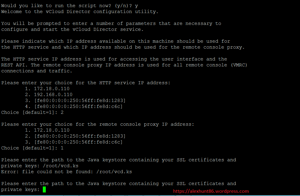 When vCloud installer is run it invokes a script to configure the vCloud director and in the process it asks for the path to the certificates which will be used in securing the http and console-proxy connections.