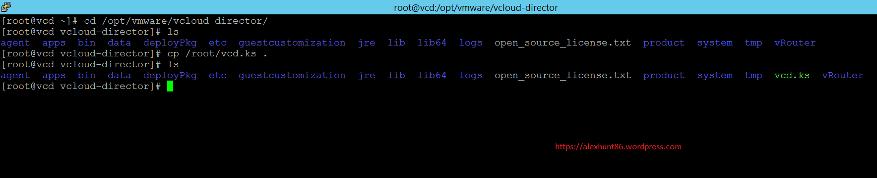[root@vcd~]# cd /opt/vmware/vcloud-director