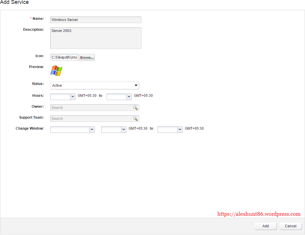 Provide a name for your service, choose an icon to represent your service, mark the status as active, and click add to create your new service