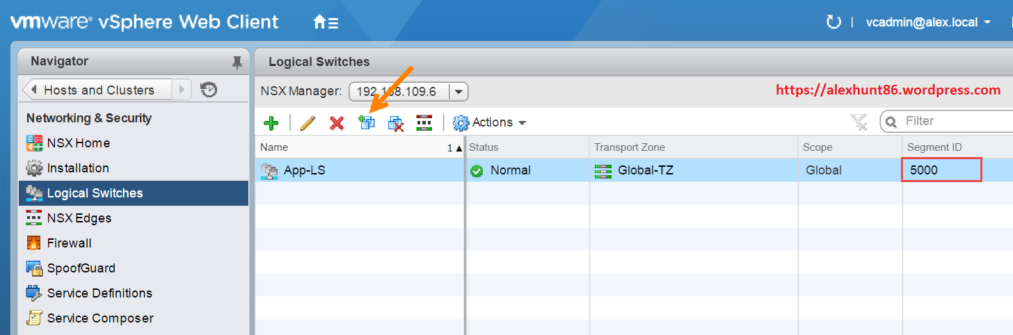 A: Go to Networking & Security | Logical Switches and clicking on the VM icon as shown in figure. This method will allow to migrate multiple VM’s at once from their current network (portgroup) to the logical switch.