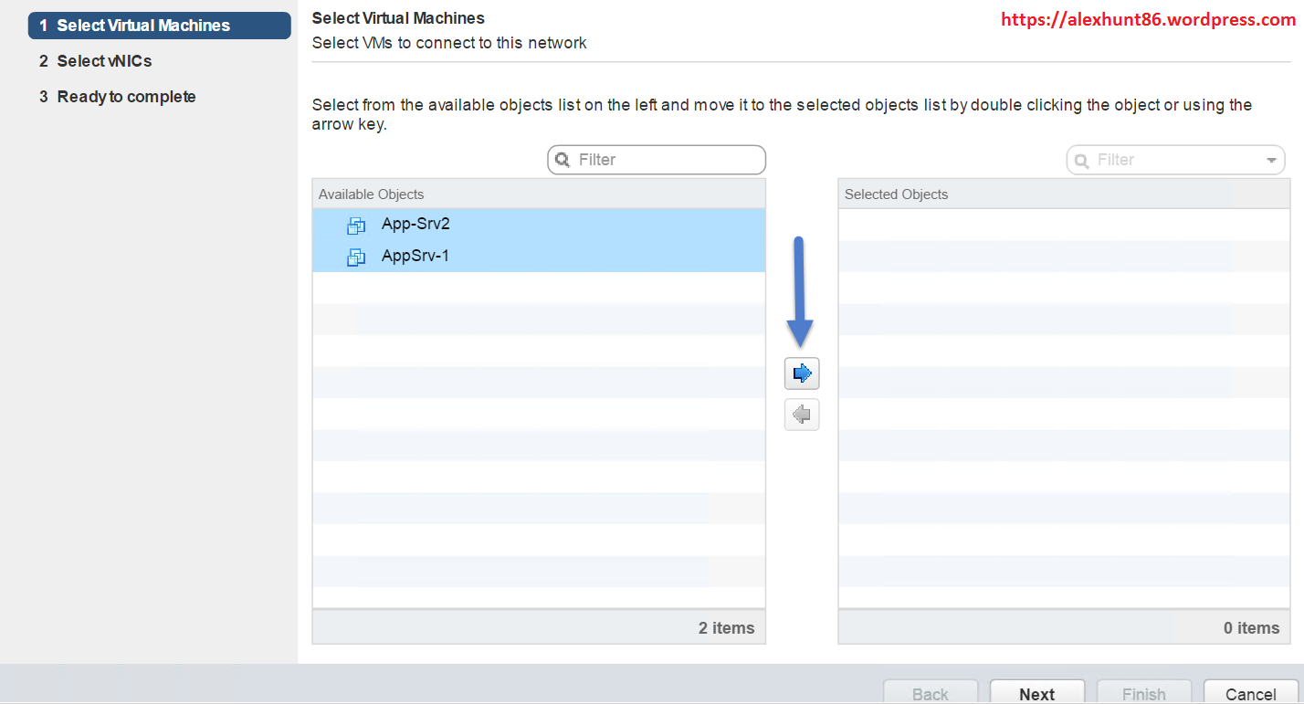Select the VM’s from the list and click on the blue arrow button to add them to selection window and hit next.