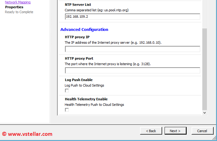 Apart from network settings, you will find advance configuration option where you need to provide HTTP proxy information or the log server information. Along with that, the “Log Push to the Cloud Setting” option is also provided here. If you select this option then the logs will be pushed to VMware server in Cloud.