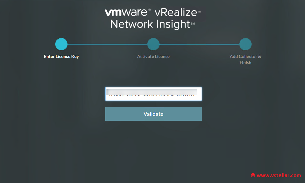 Next you have to provide the license key to activate the product. Click on validate button after providing the key.