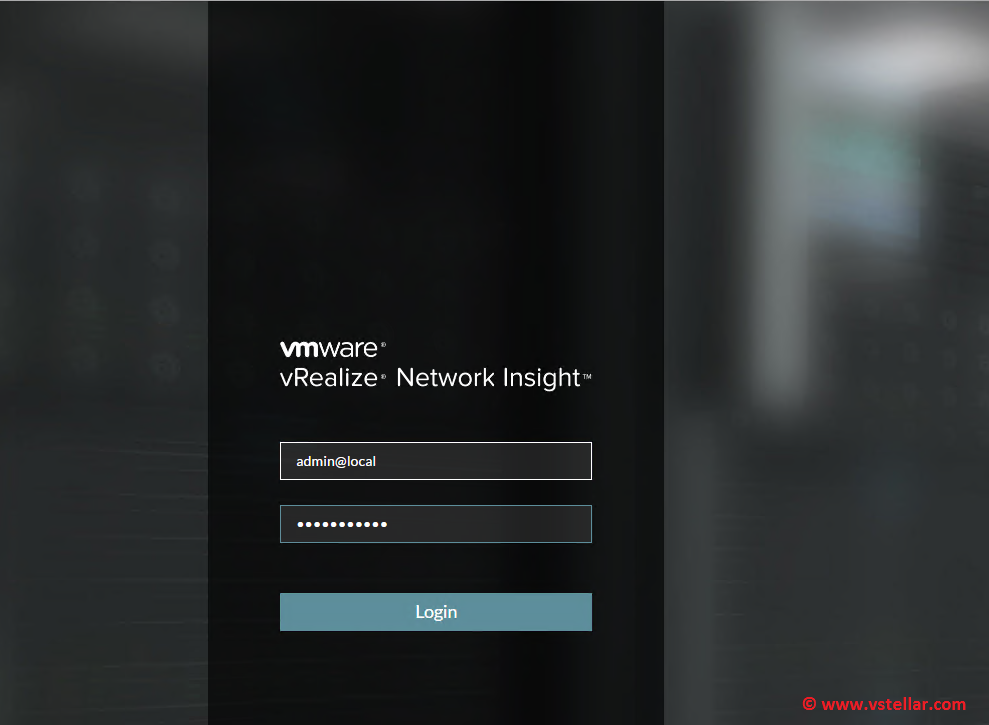 Login to vRNI console using username “admin@local” and password set in previous step where you activated the license.