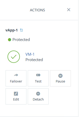 From the Actions tab, you can perform various operations like Failover, Test replication, Pause replication, etc.