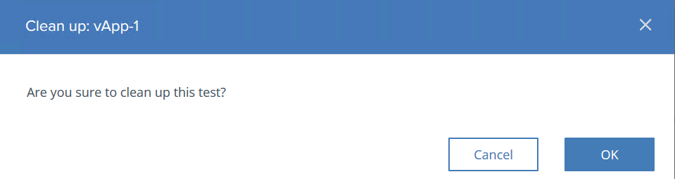 To perform the test cleanup, select the Cleanup option from the Actions tab and click OK.