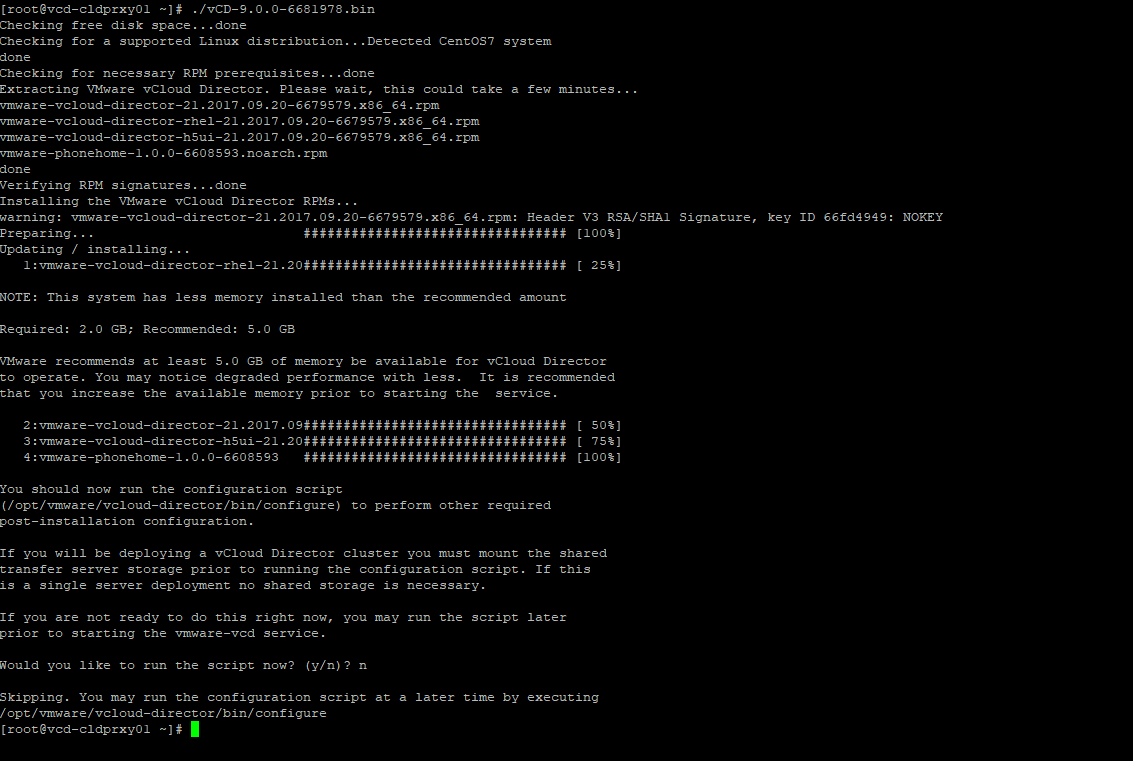 Run the vCD installer and press ‘n’ to skip the configuration.