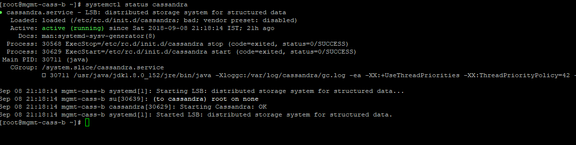 [root@mgmt-cass-b ~]# systemctl start cassandra |