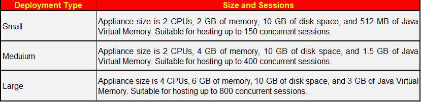 VCAV portal host size varies from small to medium to large, depending on the number of concurrent sessions that the portal host will be handling.