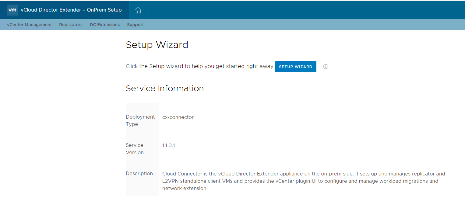 To connect the Tenant environment with the cloud provider, we need to deploy an instance of vCloud Extender on-premises. Deployment is similar to the service provider side, but with a difference that we select the deployment type as “cx-connector“.