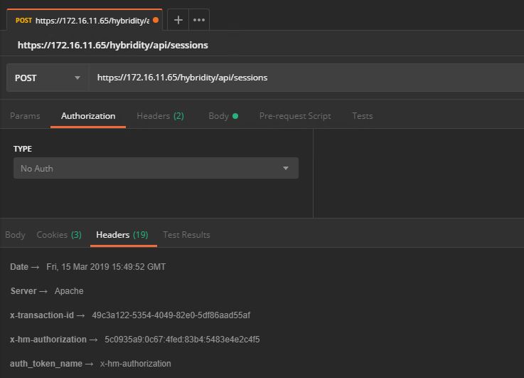 Clicking on the Send button will provide you “x-hm-authorization” token value.