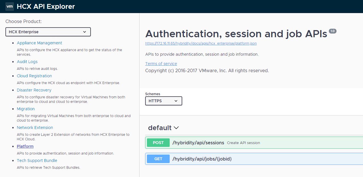 The HCX API interface can be accessed by typing https://<hcx-manager–fqdn>/hybridity/docs/index.html, and it will bring you to the initial interface.