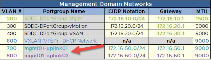 1: Additional networks for Edge Gateway uplinks: With VCF 3.9.1, NSX-v ESG’s are deployed which will be leveraged by vRealize products that can be deployed later once the Mgmt Domain is deployed. You have to define the uplink network that will be used by the ESG’s to form BGP peering etc with your ToR.