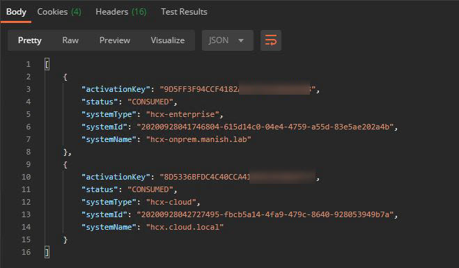 2: Consumed: This is the state of key when it has been used to activate HCX appliance (cloud/connector).