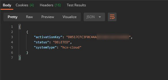 API: POST https://{{hcx_msp_host}}/msp/api/subscriptions/<SID>?action=deleteActivationKey