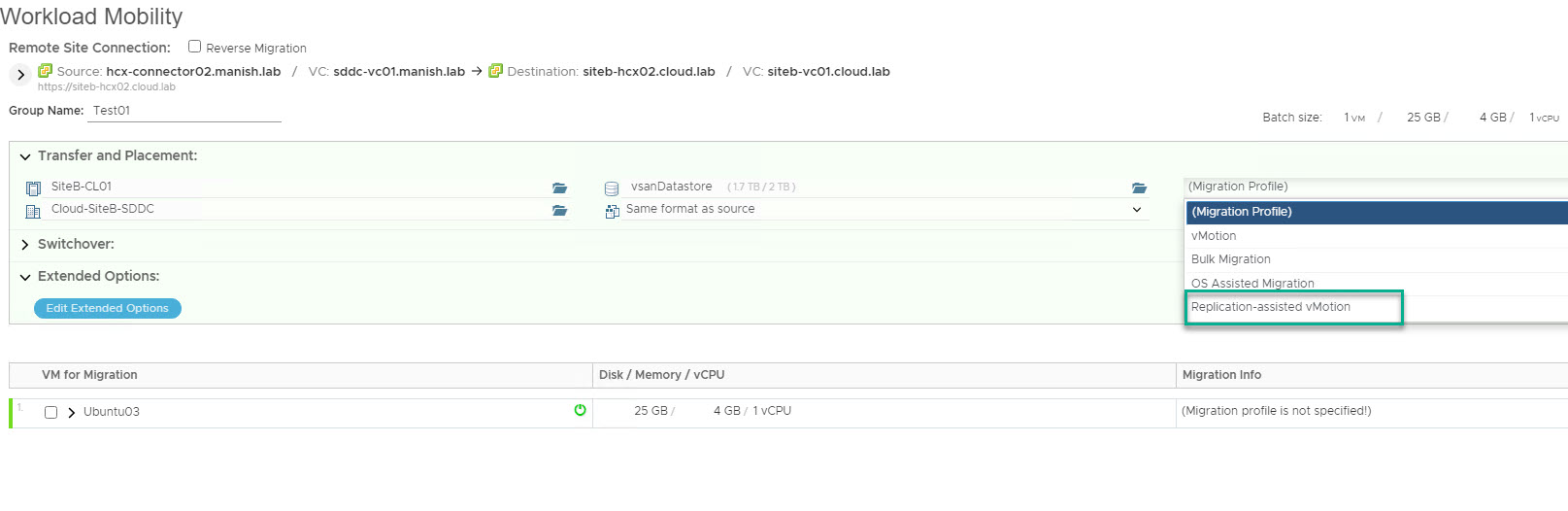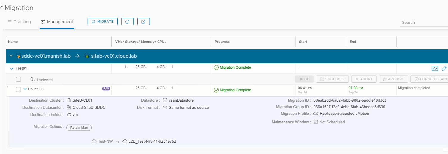 Note: There are some caveats associated with RAV. These are very well documented in HCX official documentation. So plan your migration carefully before using RAV migrations.