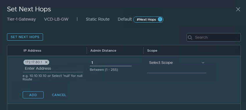 Note: Don’t attach this T1 gateway to the T0 gateway. The T1 gateway will operate in standalone mode.