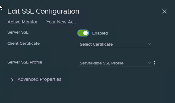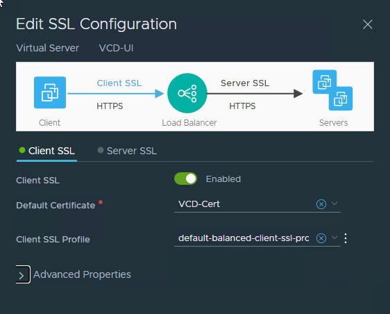 - Client SSL: Enabled, Default Certificate: Certificate which we imported in NSX-T UI, Client SSL Profile: default-balanced-client-ssl-profile,
