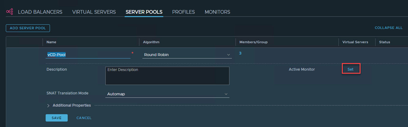 - Under virtual servers, click on Set to define the virtual servers that we created in the previous step.