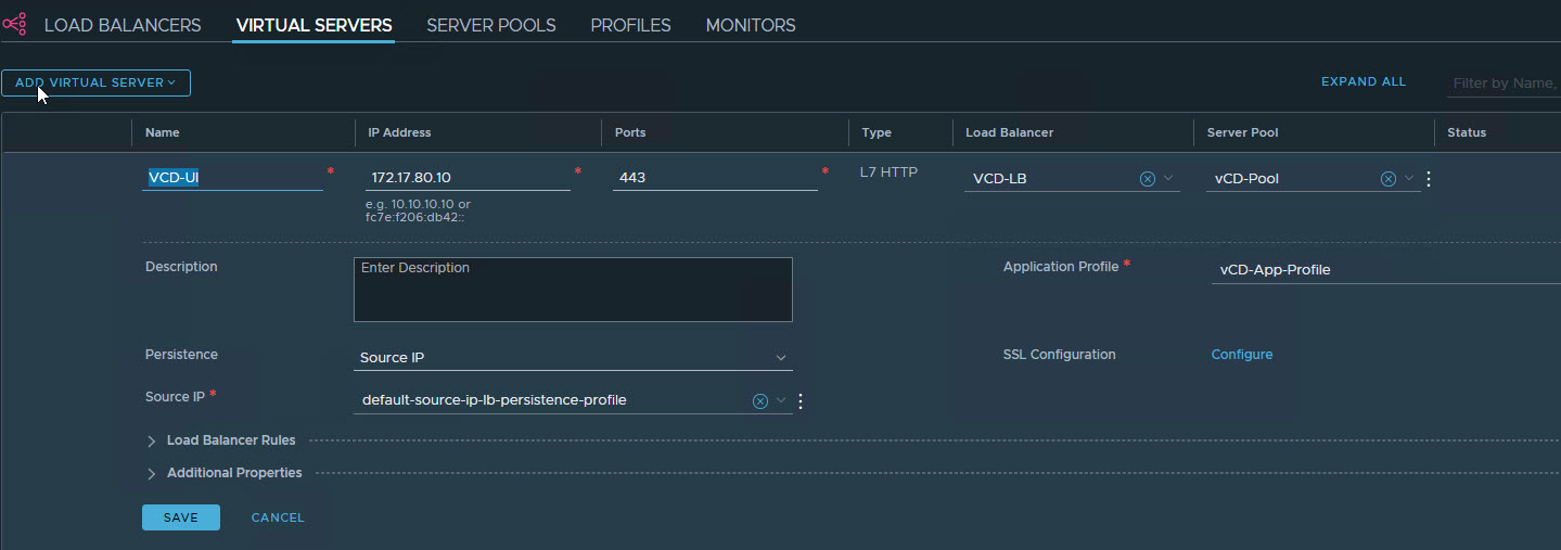 We will add two virtual servers. One for UI/API and another for VM Remote Console connections.