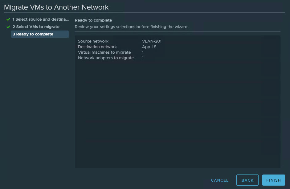 As next step of testing, L2-Bridge-Test01 VM was migrated from VLAN-201 network to App-LS network with continuous ping.