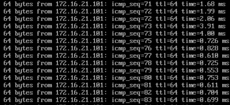 Not a single ping was missed. Although latency did drop after icmp_seq 73 (when cutover happened)