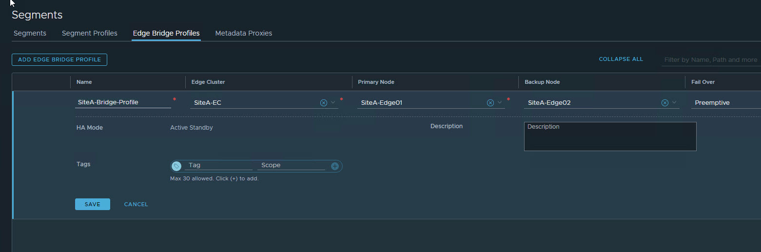 The Edge bridge profile is the configuration item that ties together the Edge bridge with the overlay segments which will take part in bridging.