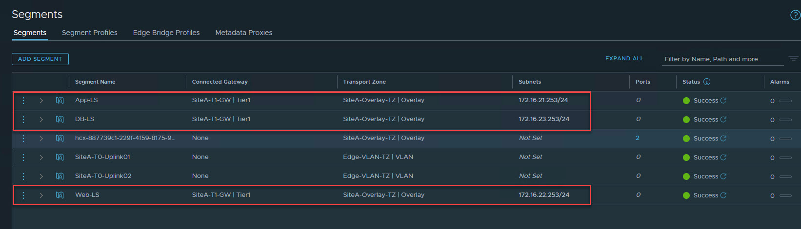 Create necessary overlay segments with the same subnets that exist for VLAN connected workloads. Make sure default gateway for the chosen subnet is different from the gateway of VLAN based port groups.
