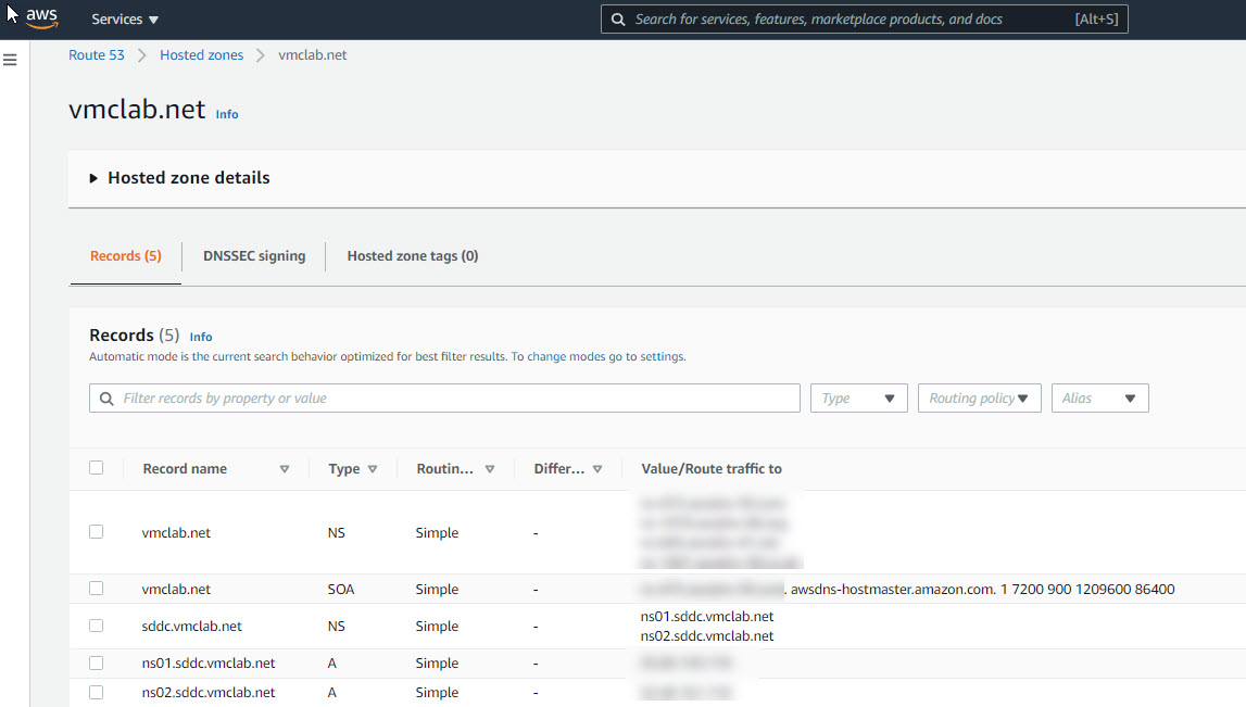 Note: In my lab, I have the domain vmclab.net hosted in AWS.