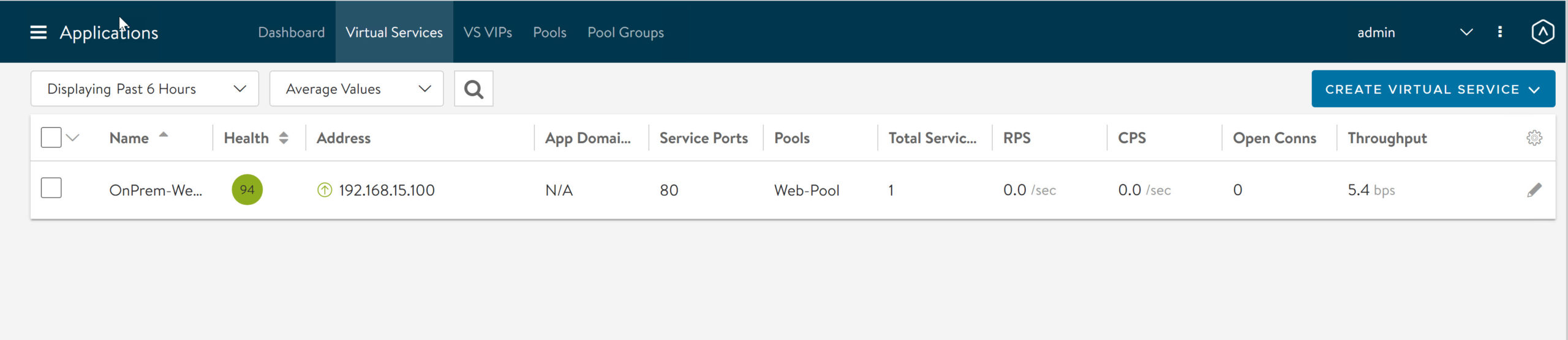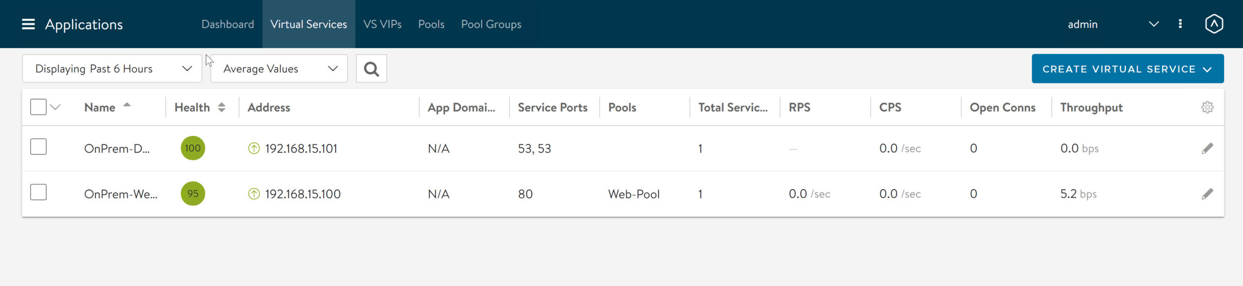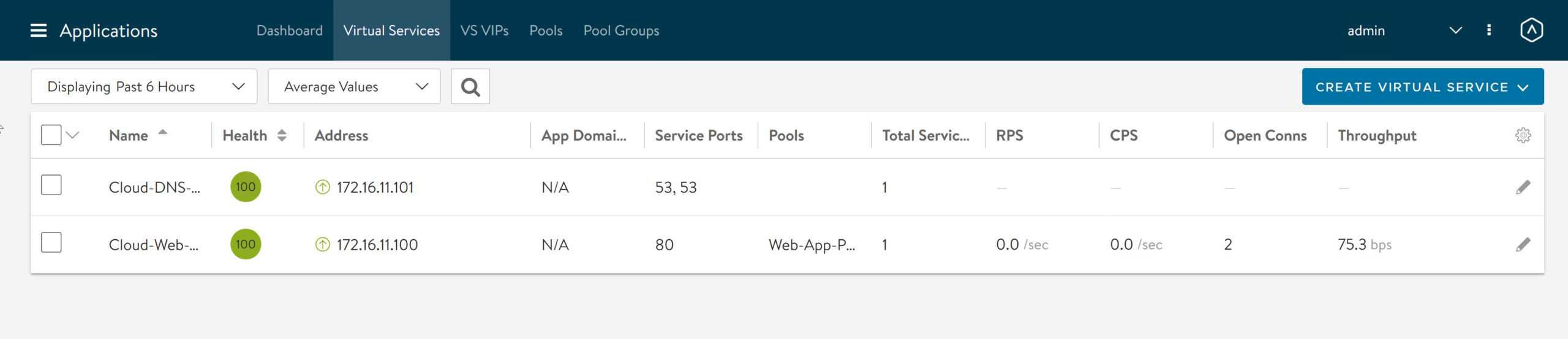 Ensure that the newly created DNS Virtual Service is healthy and status is Up.