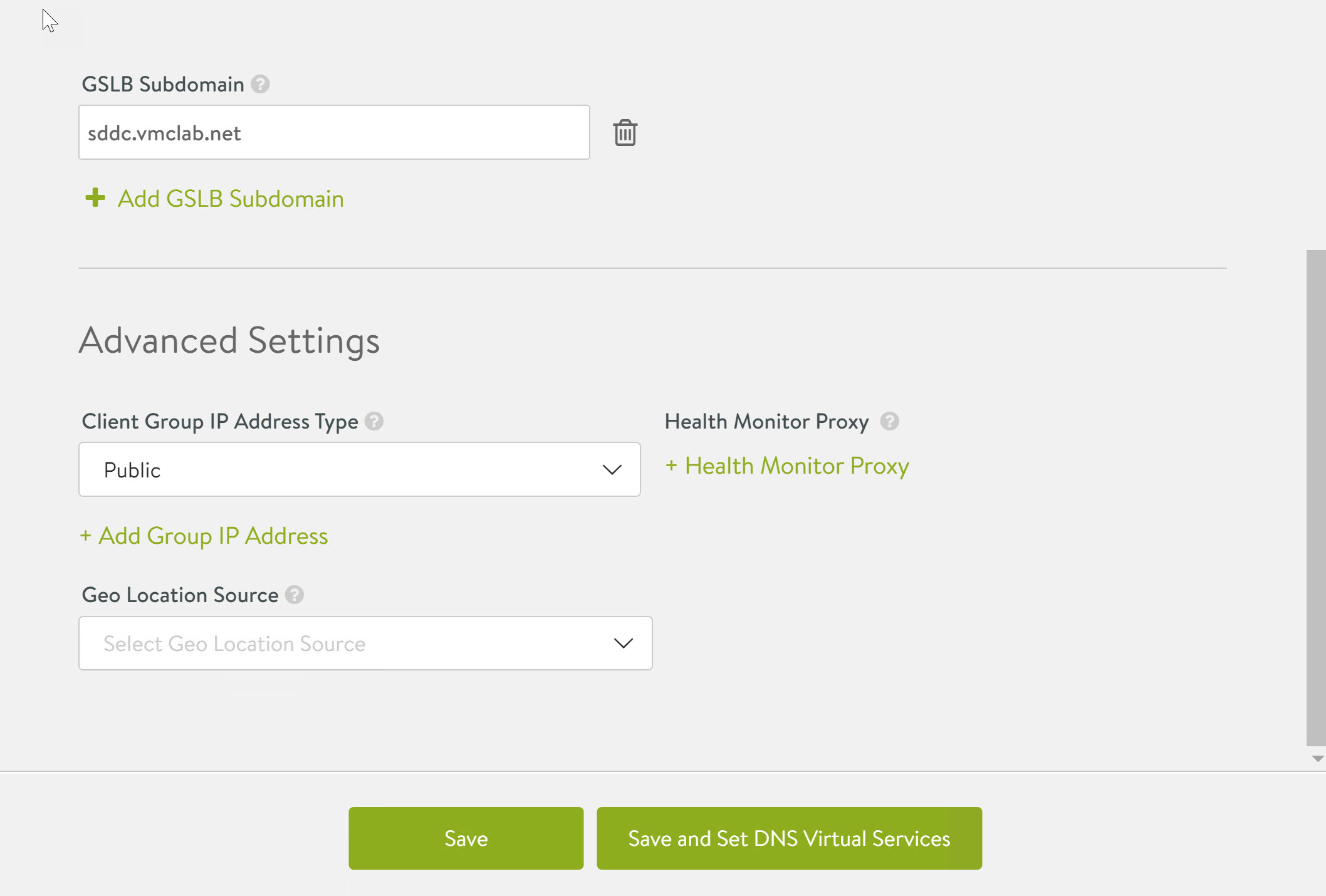 Click on Save and Set DNS Virtual Services to map the DNS Virtual Service with the GSLB Subdomain and hit the save button to finish the site addition wizard.