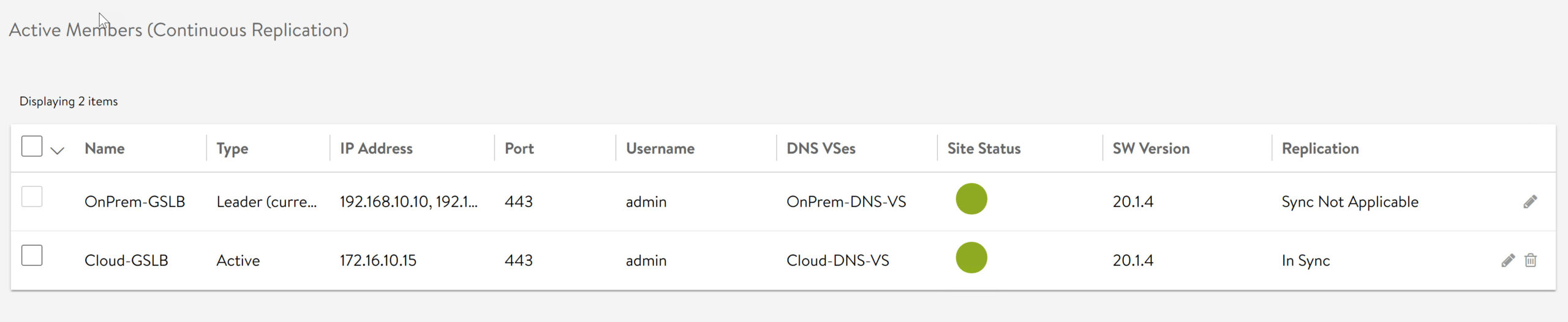 At this point, the two Avi sites are talking to each other, and configuration synchronization is enabled.