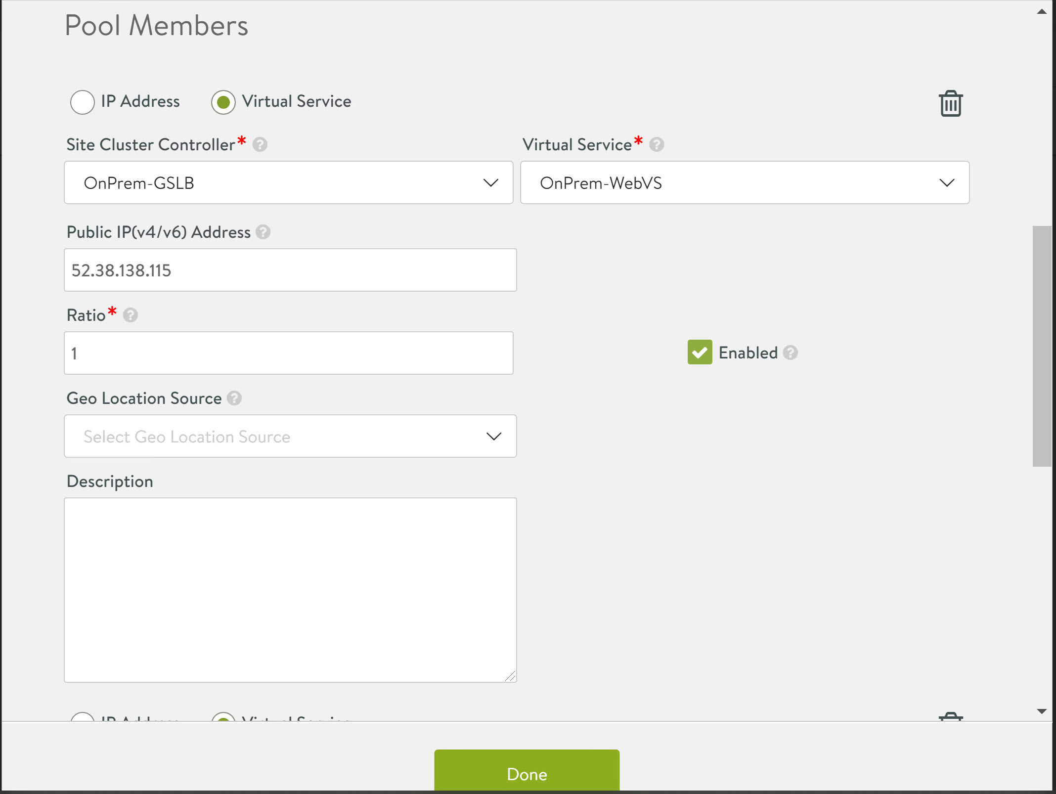 Under Pool Members, select the type as Virtual Service and configure the following settings: