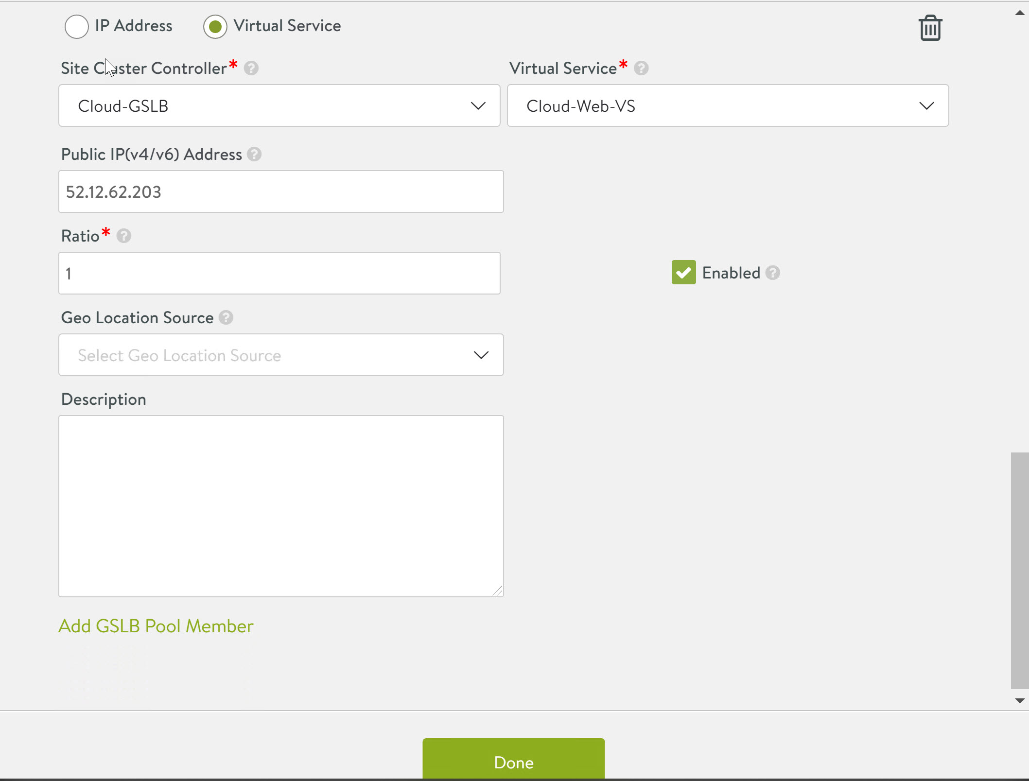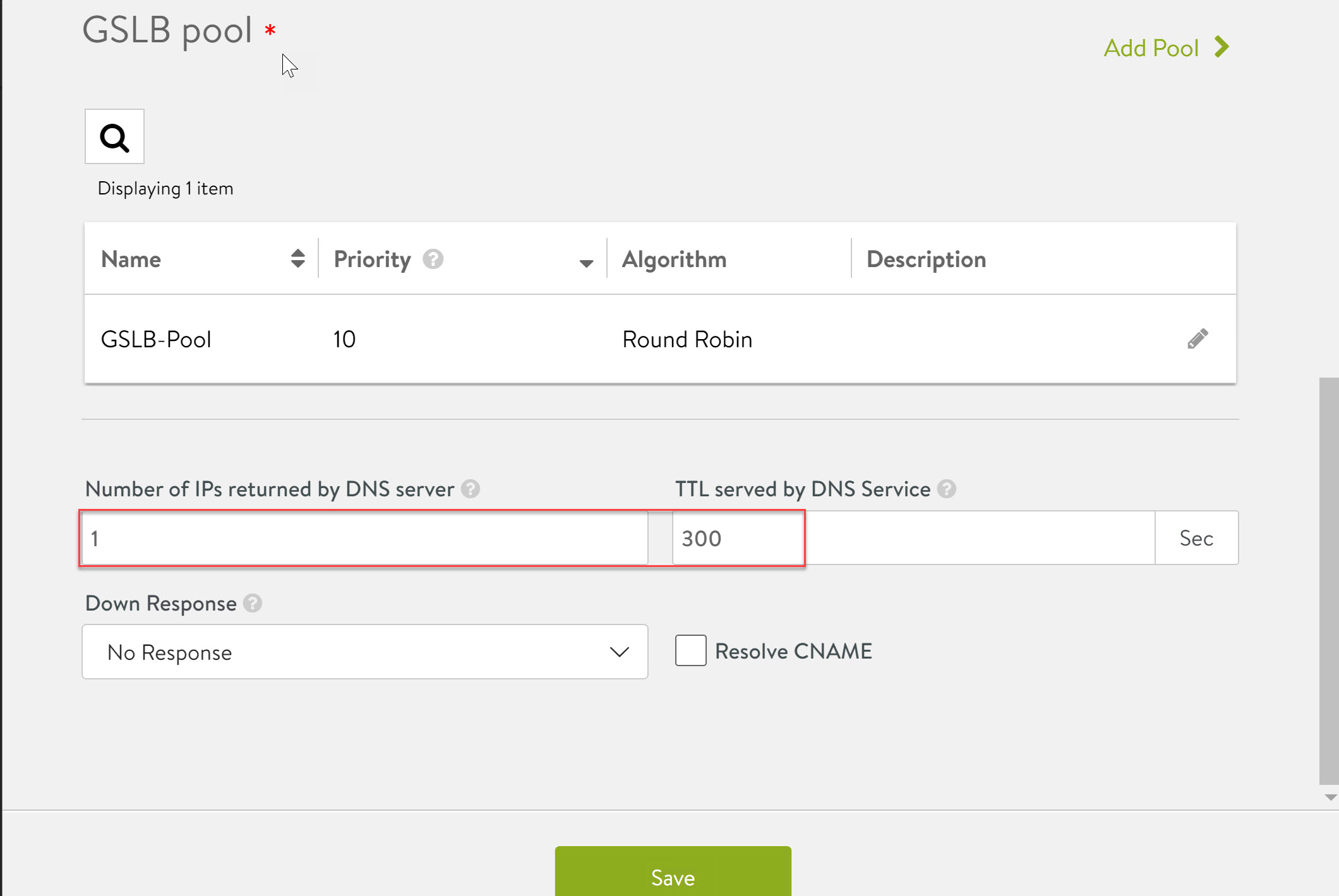 Under GSLB Pool, Click on the Add Pool option and enter the following parameters: