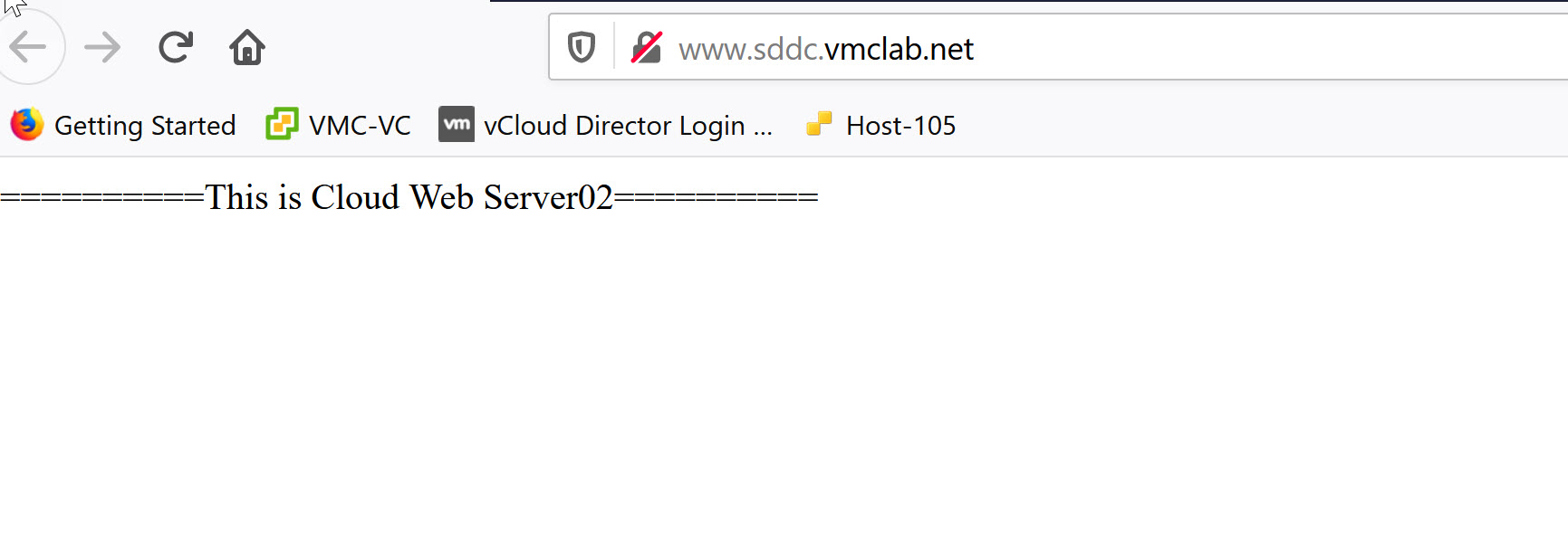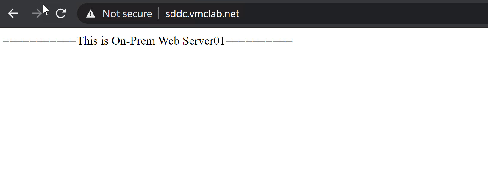 In my lab, the application url is configured as www.sddc.vmclab.net. This is a publicly resolvable URL created via AWS Route 53 service.