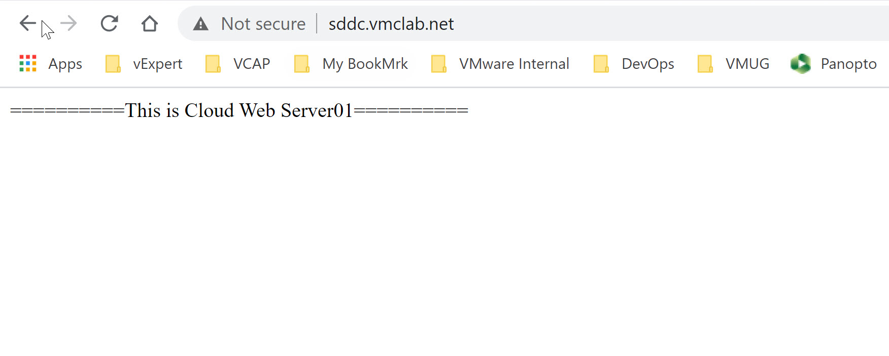 Let’s assume the 4 web servers running across 2 SDDC are servicing the same web application and you are looking for doing a global load balancing along with local load balancing.