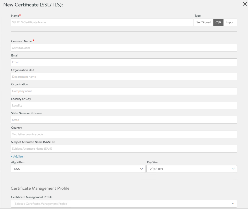 CSR includes information such as domain name, organization name, locality, and country. The request also contains the public key/private key, which will be associated with the certificate generated. A CSR can be generated directly from the NSX ALB portal, but that requires configuring a Certificate Management Profile or using the OpenSSL utility.