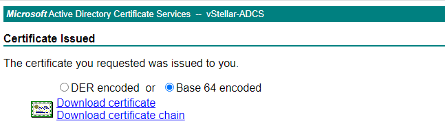 Choose the base64 encoded option and then select the ‘Download certificate chain’ option.