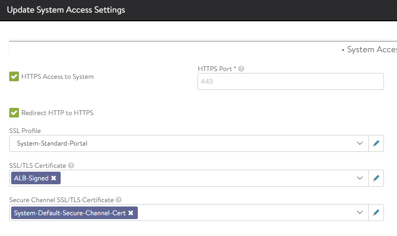 Navigate to the Administration > Settings > Access Settings page and choose the newly created signed certificate under SSL/TLS Certificate option.